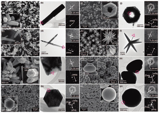 - Zhou, J.; Wang, Z.; Wang, L.; Wu, M.; Ouyang, S.; Gu, E. Synthesis of ZnO hexagonal tubes by a microwave heating method. Superlattice Microst. 2006, 39, 314–318. [Google Scholar] [CrossRef]