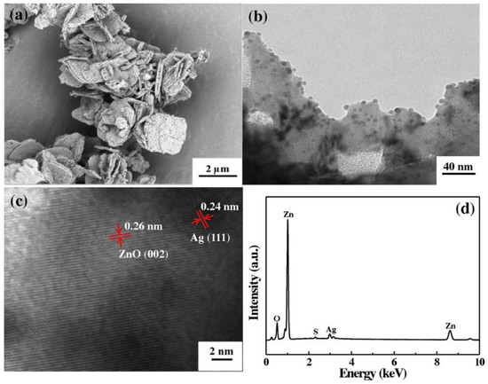 - Liu, Q.; Liu, E.; Li, J.; Qiu, Y.; Chen, R. Rapid ultrasonic-microwave assisted synthesis of spindle-like Ag/ZnO nanostructures and their enhanced visible-light photocatalytic and antibacterial activities. Catal. Today 2020, 339, 391–402. [Google Scholar] [CrossRef]