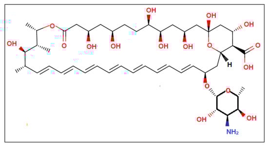 Amp B is one of the key drugs utilized for the treatment of fungal infections and leishmaniasis, though poor bioavailability and gastrointestinal irritation may lead to reduced effects and patient non-compliance. The structure of Amp B, as shown in Figure 2, indicates that it acts by binding to sterols present in the cell membrane of vulnerable parasites that change the permeability of the membrane. Among various biopolymers, polycaprolactone (PCL) has exhibited superior properties in terms of sustained release, enhanced loading capacity and higher in vivo absorption of encapsulated drugs [17]. Poloxamer 407 (P-407), a non-ionic surfactant, possesses the highest solubilization capacity and the lowest toxicity compared to polyoxyethylene sorbitan monolaurate (Tween 20) [18]. It has also been proposed that DMSO may intermingle with membrane proteins, leading to organizational defects at the intercellular keratin protein in the stratum corneum–lipid border, which may heighten its permeability. Hence, it is interesting to study the potential of DMSO and Poloxamer 407 to enhance skin permeation of Amp B when supplemented into a polycaprolactone polymeric nanoemulsion.