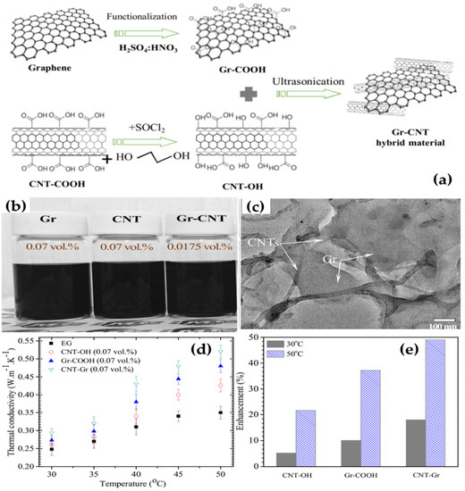 - Trinh, P.V.; Anh, N.N.; Hong, N.T.; Hong, P.N.; Minh, P.N.; Thang, B.H. Experimental study on the thermal conductivity of ethylene glycol-based nanofluid containing Gr-CNT hybrid material. J. Mol. Liq. 2018, 269, 344–353. [Google Scholar] [CrossRef]