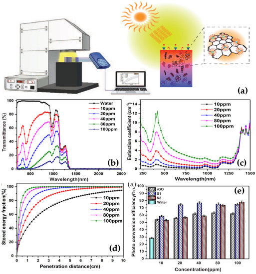 - Liu, X.; Wang, X.; Huang, J.; Cheng, G.; He, Y. Volumetric solar steam generation enhanced by reduced graphene oxide nanofluid. Appl. Energy 2018, 220, 302–312. [Google Scholar] [CrossRef]