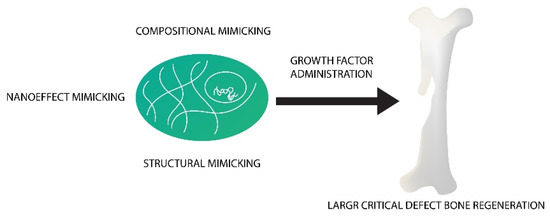 Special composition and architecture allow them to have self-regenerative and self-remodelling ability in response to damaging signals and mechanical stimuli [111]. This makes nanomaterial an ideal candidate for bone graft development, as it is capable of recapitulating the organisation of the natural extracellular matrix, in order to regulate bone forming cells activity [112], as can be seen in Figure 4.