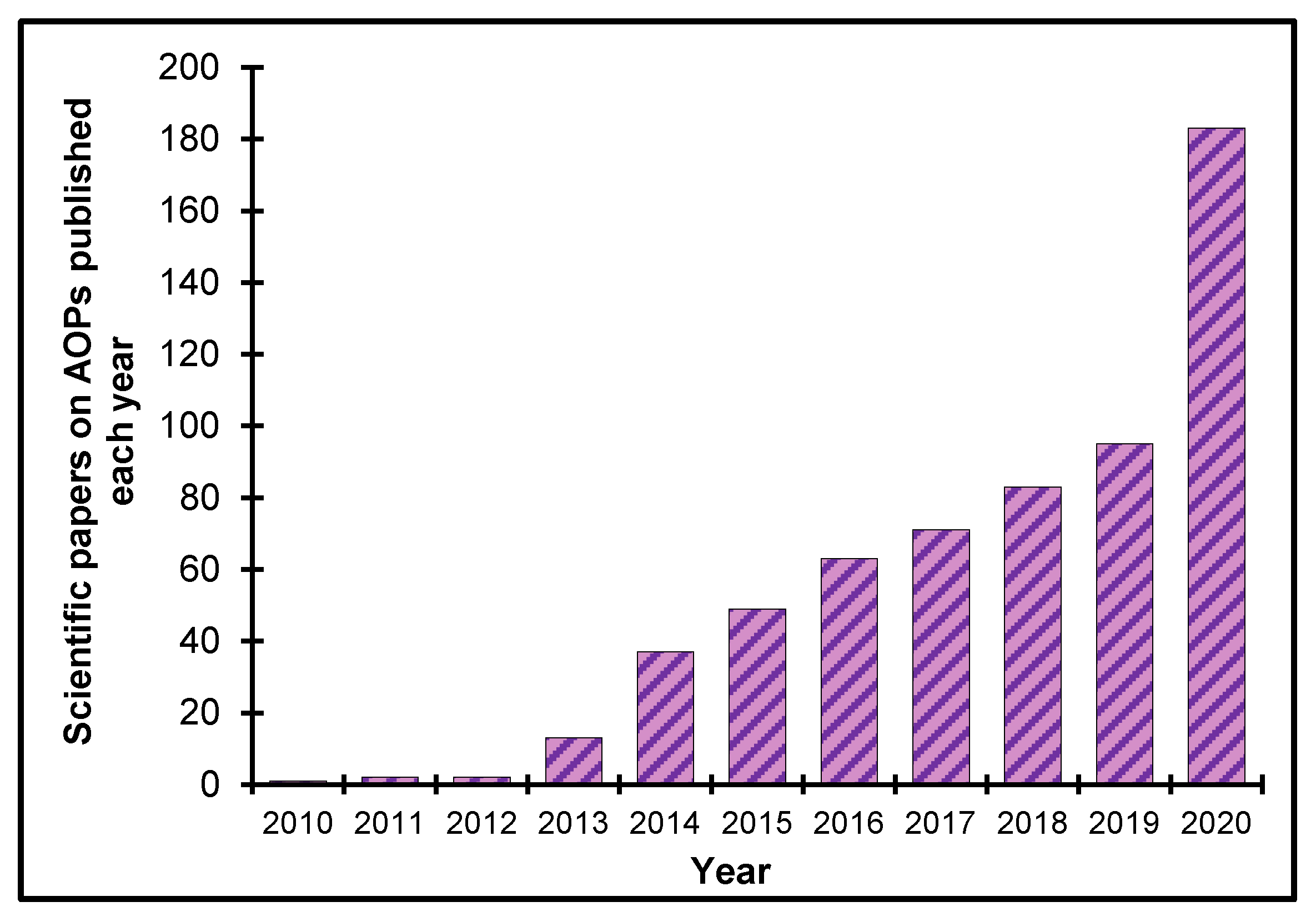 - Carusi, A.; Davies, M.R.; De Grandis, G.; Escher, B.I.; Hodges, G.; Leung, K.M.; Whelan, M.; Willett, C.; Ankley, G.T. Harvesting the promise of AOPs: An assessment and recommendations. Sci. Total. Environ. 2018, 628–629, 1542–1556. [Google Scholar] [CrossRef]