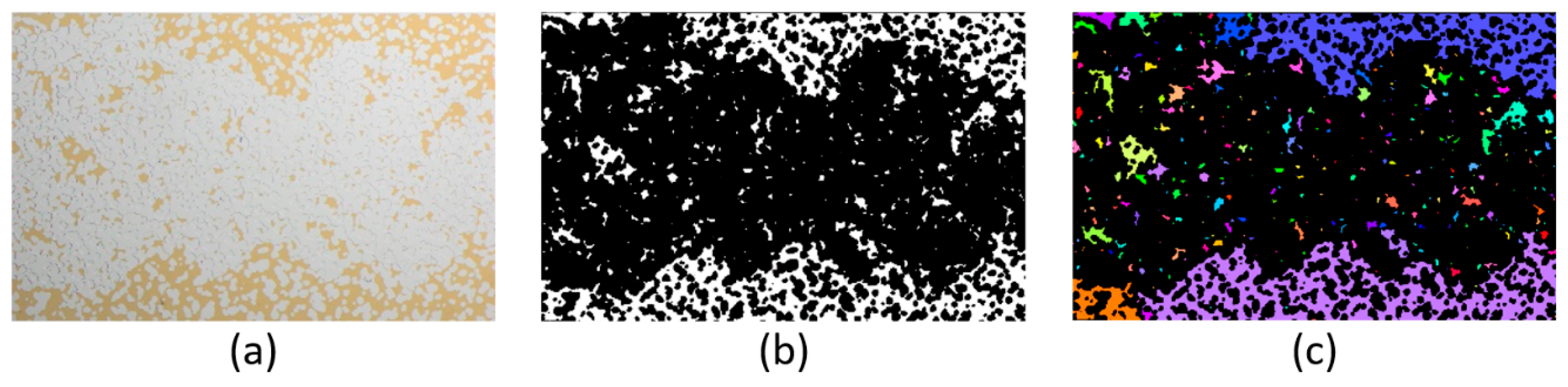 - Khanamiri, H.H.; Torsæter, O. Fluid topology in pore scale two-phase flow imaged by synchrotron X-ray microtomography. Water Resour. Res. 2018, 54, 1905–1917. [Google Scholar] [CrossRef]