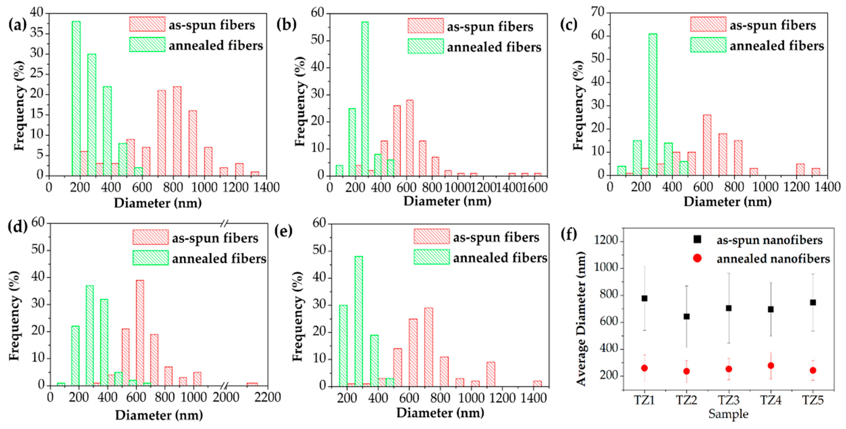 - Cai, Z.; Song, J.; Li, J.; Zhao, F.; Luo, X.; Tang, X. Synthesis and characterization of zinc titanate fibers by sol-electrospinning method. J. Sol.-Gel Sci. Technol. 2012, 61, 49–55. [Google Scholar] [CrossRef]