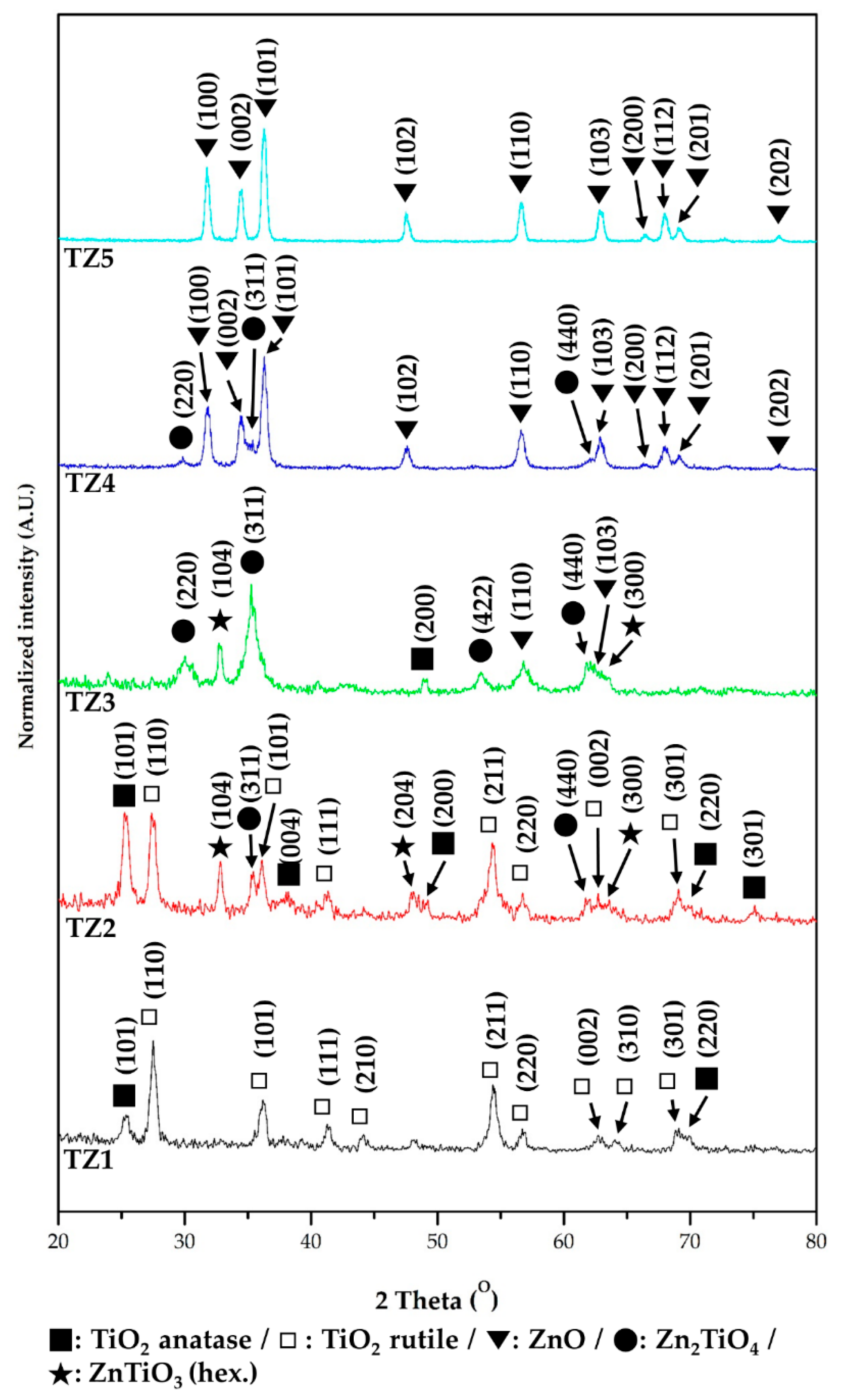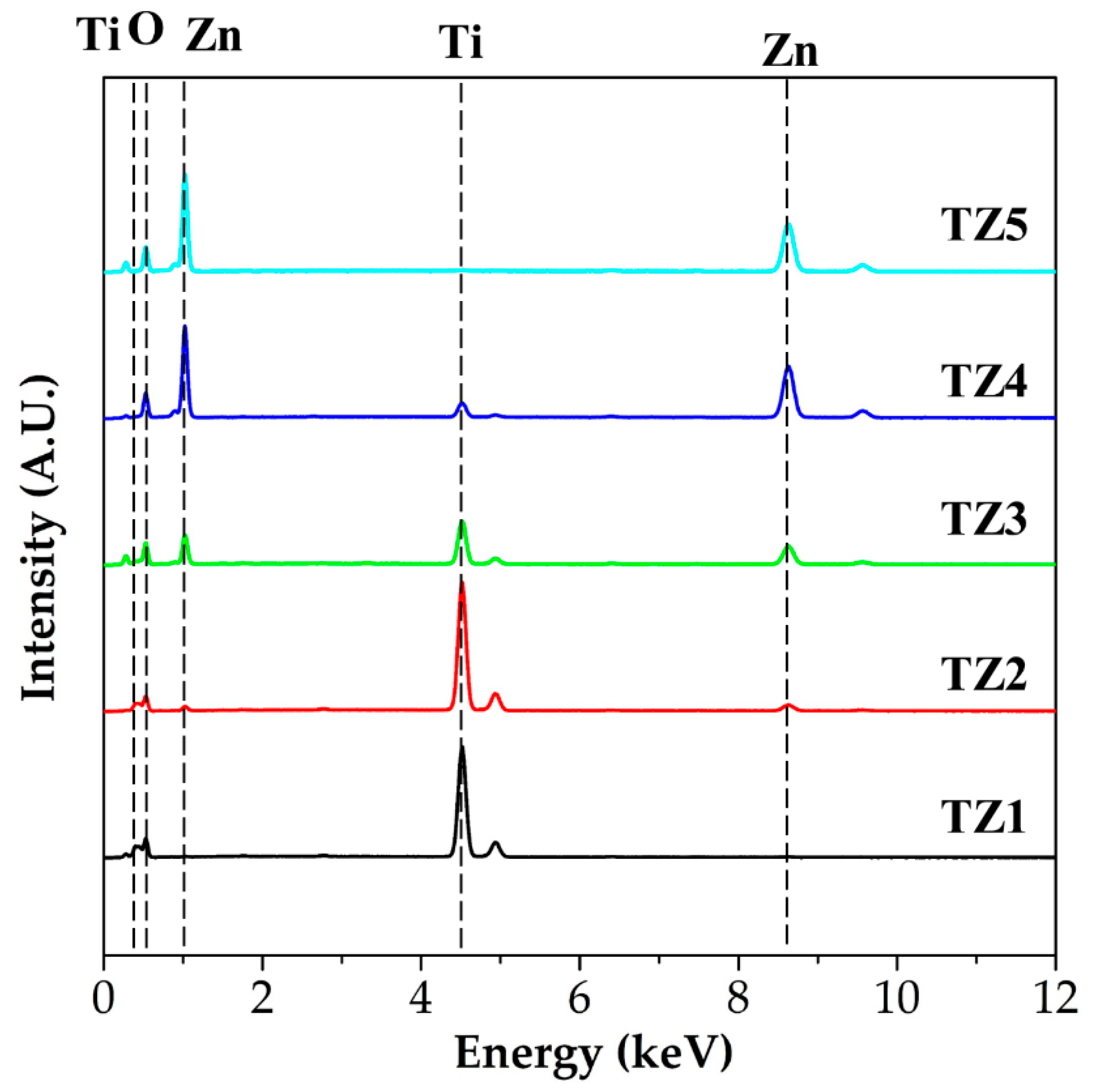 | Ti/Zn molar ratio | 10:0 | 9:1 | 5:5 | 1:9 | 0:10 |