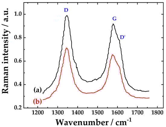Raman spectra of (a) pristine CNTs and (b) functionalized CNTs.