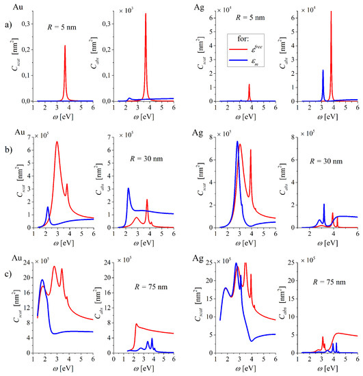 - Derkachova, A.; Kolwas, K. Size dependence of multipolar plasmon resonance frequencies and damping rates in simple metal spherical nanoparticles. Eur. Phys. J. Spec. Top. 2007, 144, 93–99. [Google Scholar] [CrossRef]