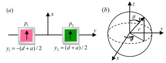 According to Equation (7), when , for any dipolar amplitudes and . For and is the position of the electric dipoles along the x axis, we have: