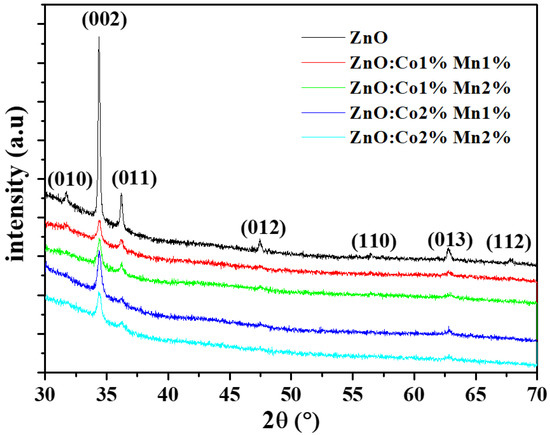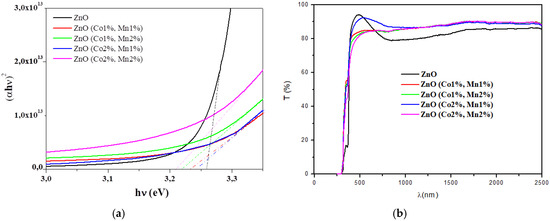 - Abdullahi, S.S.; Köseoğlu, Y.; Güner, S.; Kazan, S.; Kocaman, B.; Ndikilar, C.E. Synthesis and characterization of Mn and Co co-doped ZnO nanoparticles. Superlattices Microstruct. 2015, 83, 342–352. [Google Scholar] [CrossRef]