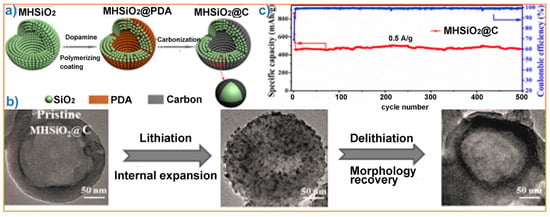- An, W.; Fu, J.; Su, J.; Wang, L.; Peng, X.; Wu, K.; Chen, Q.; Bi, Y.; Gao, B.; Zhang, X. Mesoporous hollow nanospheres consisting of carbon coated silica nanoparticles for robust lithium-ion battery anodes. J. Power Sources 2017, 345, 227–236. [Google Scholar] [CrossRef]