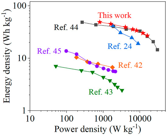 Ragone plot of energy density and power density.