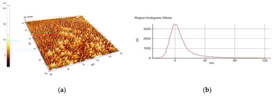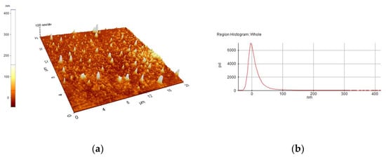 AFM image of 4%GO-SiO2-P2O5/glass film: (a) morphology, (b) region histogram.