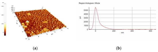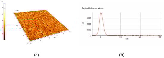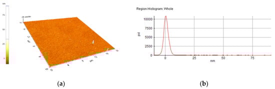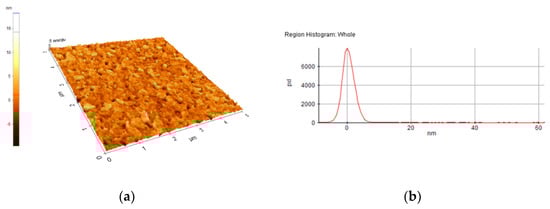 AFM image of 1%rGO-SiO2-P2O5/glass film: (a) morphology, (b) region histogram.