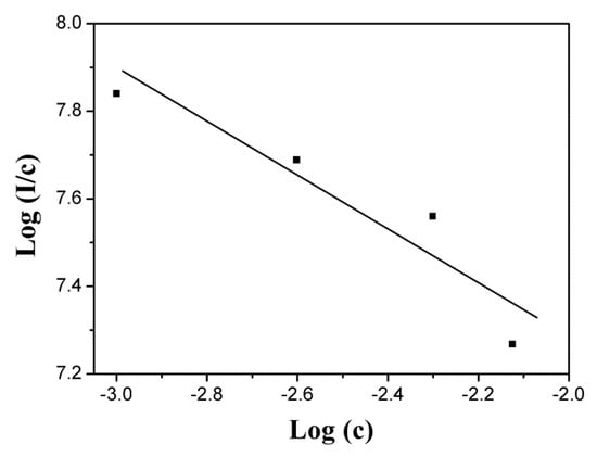 The relationship between log(I/c) and log(c) for the GOS:Pr phosphors.