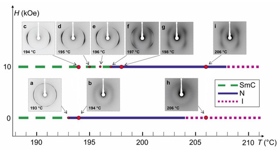 - Ostapenko, T.; Wiant, D.B.; Sprunt, S.N.; Jákli, A.; Gleeson, J.T. Magnetic-field induced isotropic to nematic liquid crystal phase transition. Phys. Rev. Lett. 2008, 101, 247801. [Google Scholar] [CrossRef]