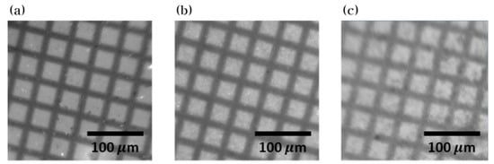 X-ray images of a TEM grid obtained from utilizing ZnWO4 scintillator screens with average particles sizes of (a) 176.4 nm, (b) 626.7 nm, and (c) 2.127 μm.