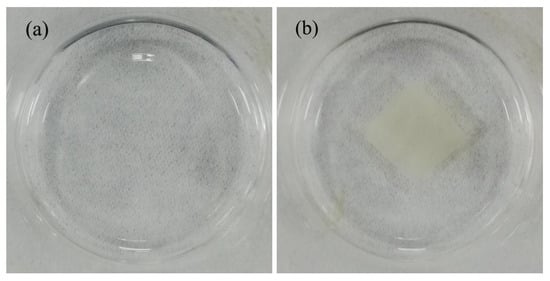 Images of (a) pure PVP and (b) RL/PVP = 4/4 nanofilms immersed in deionized water.