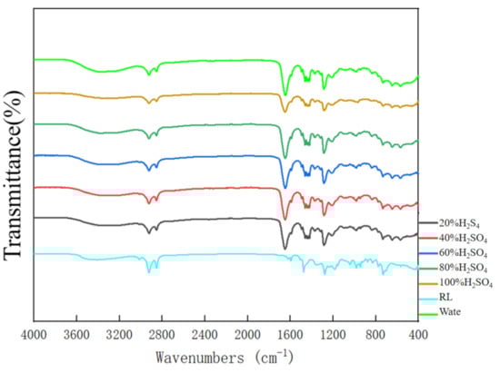 FT-IR spectra of nanofilms (RL/PVP = 4/4) after one-hour H2SO4 immersion.
