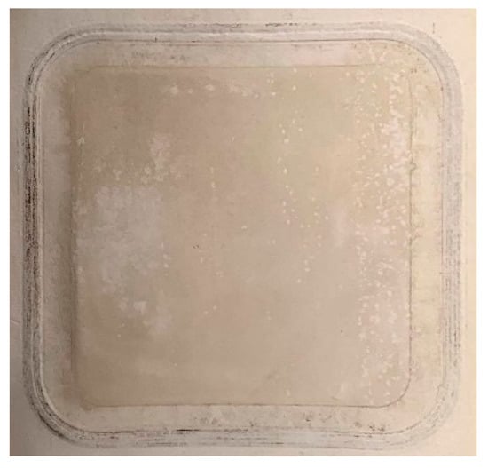 Figure 3 shows permeate fluxes and recovery factors of the NF90 and the two Al2O3-doped silica membranes, namely S/O = 0.5 and S/O = 2 when filtering the groundwater (initial volume 2.0 L) at 5 bar of transmembrane pressure. At 1% of water recovery, the permeates fluxes for S/O = 2, NF90, and S/O = 0.5 were at 28, 25, and 17 LMH (i.e., L·m−2·h−1), respectively. However, when the recovery factor reaches 50% (i.e., after collecting 1.0 L of permeate), the flux reduces to 19, 11, and 3 LMH for S/O = 2, NF90, and S/O = 0.5, respectively. For S/O = 0.5, the flux becomes relatively stable after 50 h, which corresponds to a recovery factor of 38%. The decreasing trend of the flux for all three membranes could be attributed to two factors: the increase of osmotic pressure caused by the increasing feed concentration during the filtration; and the formation of the fouling/scaling layer on the surface of the membrane (Figure 3). We assume the anions present in the feed water were HCO3−, Cl− and SO42−. Base on charge balance, a rough estimation of the osmotic pressure of the initial feed and after treatment can maximum account for a flux reduction of 30% for the NF90 membrane, whereas the experimental data shows a flux reduction of around 64%. Therefore, fouling and/or scaling are expected to play a more prominent role in the flux decline during filtration. This was confirmed by visually inspecting the surface of the membranes after the filtration tests. Indeed, as shown for NF90 in Figure 4, where a layer of deposits is clearly visible at the membrane surface.