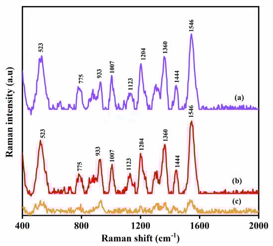 The reproducibility of the SERS measurements on three independent substrates was investigated by loading 100 µL of 200 μg/mL (5 × 10−4 M) MPN onto plasmonic nickel foam substrates of the same dimensions (5 × 12 mm) and allowing it to stand for 15 min. The substrates were washed with deionized water, air-dried, and screened by SERS.