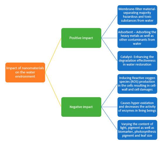 In the subsequent section, we discuss the positive impact of nanomaterials such as graphene, CNTs, silver nanoparticles, ZnO nanoparticles, TiO2 nanoparticles, and nZVI in the aqueous environment.
