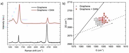 - Klar, P.; Casiraghi, C. Raman spectroscopy of graphene in different dielectric solvents. Phys. Status Solidi 2010, 7, 2735–2738. [Google Scholar] [CrossRef]