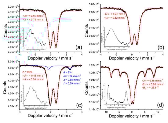 - Lopez-Herrera, M.E.; Greneche, J.M.; Varret, F. Analysis of the Mössbauer quadrupole spectra of some amorphous fluorides. Phys. Rev. B 1983, 28, 4944. [Google Scholar] [CrossRef]