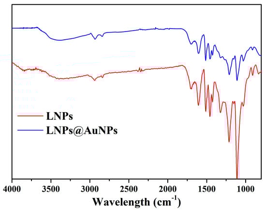 FTIR spectra of the LNPs and LNPs@AuNPs.