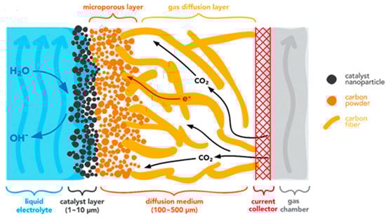 CO2RR occurs only on the surfaces of a catalytic cathode where the triple phase of CO2, H+, and e− may coexist. Therefore, it is critical to achieve high CD by controlling the wetting property of the cathode for high CO2 (and H+ in aqueous electrolyte) transfer, boosting high electronic conductivity, and enabling large surface areas by nanoengineering. The following are prerequisite properties for effective cathodes for electrochemical CO2 reduction: