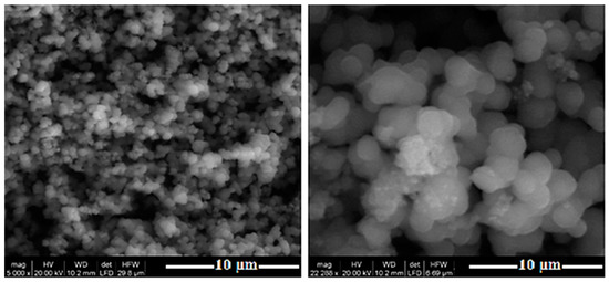 Scanning Electron Microscopy (SEM) images of the ZnTiO3-TiO2−a heterostructure material.