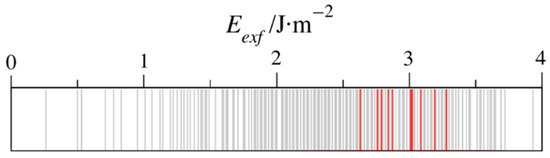 The above analysis is generally mirrored for thicker MXenes, as obtained from M3AX2 and M4AX3 MAX phases, whose Eexf values are encompassed in Table 2 and Table 3, respectively. The computed estimates again range from 0.26 (W3SbN2) to 3.65 J·m−2 (Ti3PN2), being somewhat smaller than M2AX derived ones. As far as M4AX3 cases are concerned, deviations are observed, as values range from 0.5 J·m−2 (W4SnN3) to 3.69 J·m−2 (Hf4PC3), thus even increasing from the intermediate MAX cases. Note that the negative value of −0.18 J·m−2 W4SbN3 indicates that such a MAX phase is thermodynamically unstable and would naturally decompose into Sb and W4N3.