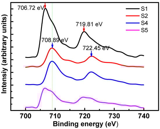 XPS spectra of the Fe2p binding energy of the samples with different annealing conditions.