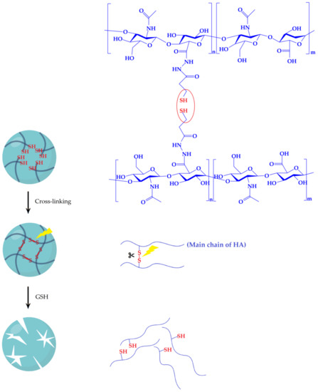 Illustration of cross-linking and redox response degradation behavior of the nanohydrogel.