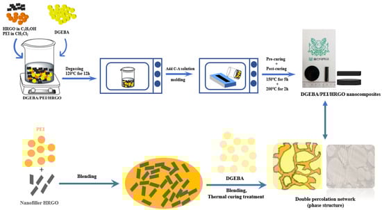 Schematic illustration of preparation of DGEBA/PEI/HRGO polyblend nanocomposites and the phase structure during the process.