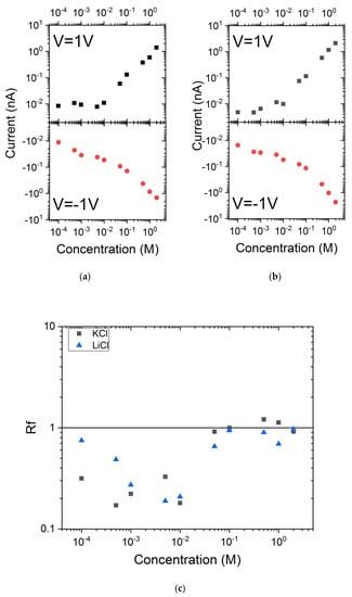 - Yameen, B.; Ali, M.; Neumann, R.; Ensinger, W.; Knoll, W.; Azzaroni, O. Single conical nanopores displaying pH-tunable rectifying characteristics. manipulating ionic transport with zwitterionic polymer brushes. J. Am. Chem. Soc. 2009, 131, 2070–2071. [Google Scholar] [CrossRef]