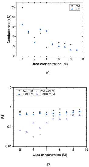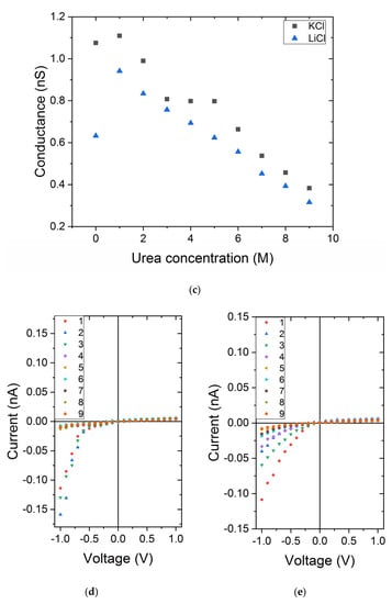 3.4. Effect of Urea on PEG Conformation and Ionic Current Rectification