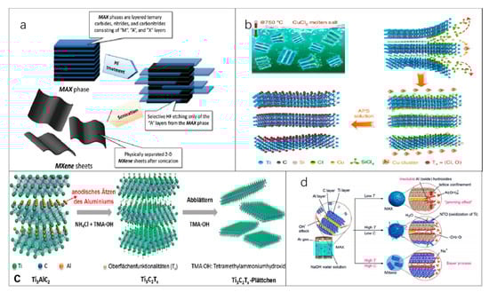 - Hong Ng, V.M.; Huang, H.; Zhou, K.; Lee, P.S.; Que, W.; Xu, J.Z.; Kong, L.B. Recent progress in layered transition metal carbides and/or nitrides (mxenes) and their composites: Synthesis and applications. J. Mater. Chem. A 2017, 5, 3039–3068. [Google Scholar] [CrossRef]
