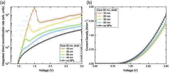 Masharin, M.A.; Berestennikov, A.S.; Barettin, D.; Voroshilov, P.M.; Ladutenko, K.S.; Di Carlo, A.; Makarov, S.V. Giant Enhancement of Radiative Recombination in Perovskite Light-Emitting Diodes with Plasmonic Core-Shell Nanoparticles. Nanomaterials 2021, 11, 45. https://doi.org/10.3390/nano11010045