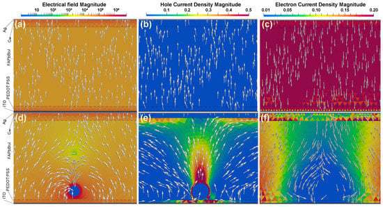 - Pecchia, A.; Gentilini, D.; Rossi, D.; Auf der Maur, M.; Di Carlo, A. Role of ferroelectric nanodomains in the transport properties of perovskite solar cells. Nano Lett. 2016, 16, 988–992. [Google Scholar] [CrossRef] [PubMed]
