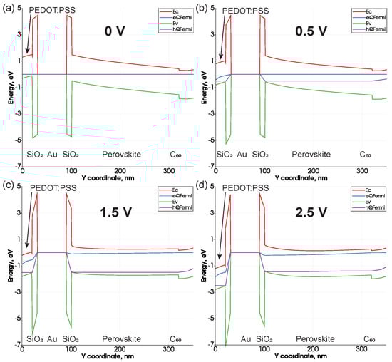 - Gets, D.; Verkhogliadov, G.; Danilovskiy, E.; Baranov, A.; Makarov, S.; Zakhidov, A. Dipolar cation accumulation at the interfaces of perovskite light-emitting solar cells. J. Mater. Chem. C 2020, 8, 16992–16999. [Google Scholar] [CrossRef]