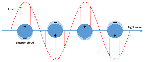 It is generally accepted that the enhancement of SERS spectra is due to the cooperation of two mechanisms: the electromagnetic and the chemical one. The electromagnetic mechanism is due to inducing the SERS substrate by the electromagnetic wave of the electric dipole (see Figure 1), which may lead to a significant local increase in the intensity of the electric field. The magnitude of the induced dipole (p) is proportional to [3]: