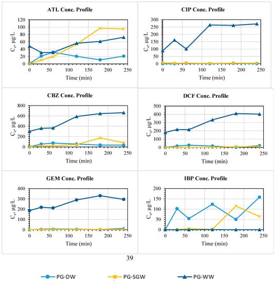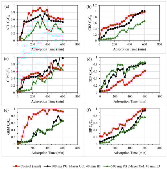 3.2. ECs Removal in PG-Sand Columns