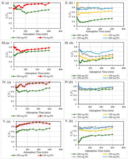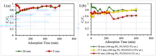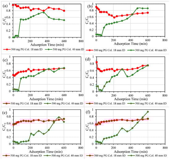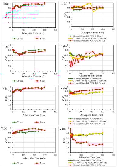 3.2.4. Different Reactive Bed Heights at Fixed PG Dosages