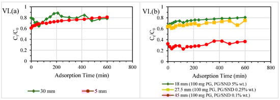 | Different packing heights at constant dosage | 18 | 50 mg PG (PG/SND 0.25% wt.) | 30 | 6.41 | 67.03 | |
