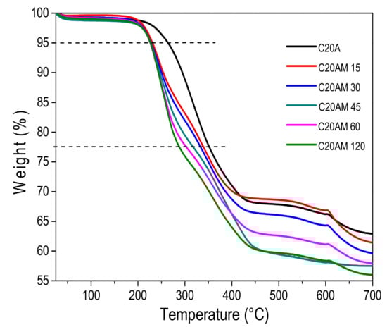 3.2.4. Thermogravimetric Analysis (TGA)