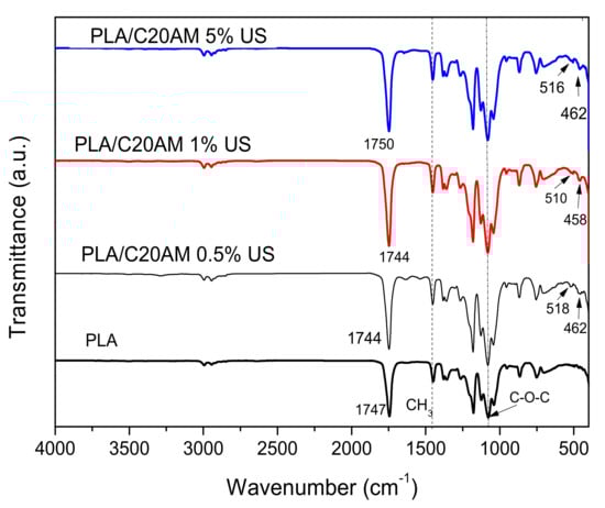 - Darie, R.N.; Pâslaru, E.; Sdrobis, A.; Pricope, G.M.; Hitruc, G.E.; Poiată, A.; Baklavaridis, A.; Vasile, C. Effect of Nanoclay Hydrophilicity on the Poly(lactic acid)/Clay Nanocomposites Properties. Ind. Eng. Chem. Res. 2014, 53, 7877–7890. [Google Scholar] [CrossRef]