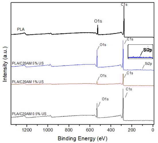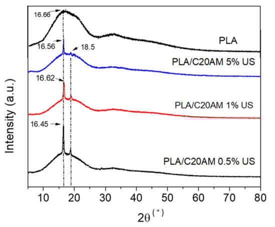 - Krishnamachari, P.; Zhang, J.; Lou, J.; Yan, J.; Uitenham, L. Biodegradable Poly(Lactic Acid)/Clay Nanocomposites by Melt Intercalation: A Study of Morphological, Thermal, and Mechanical Properties. Int. J. Polym. Anal. Charact. 2009, 14, 336–350. [Google Scholar] [CrossRef]