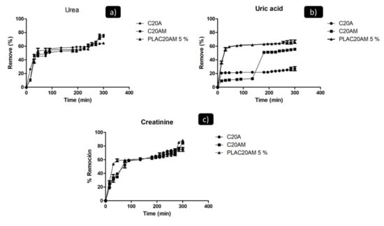 - Andrade-Guel, M.; Cabello-Alvarado, C.; Cruz-Delgado, V.J.; Bartolo-Perez, P.; De León-Martínez, P.A.; Sáenz-Galindo, A.; Cadenas-Pliego, G.; Ávila-Orta, C.A. Surface Modification of Graphene Nanoplatelets by Organic Acids and Ultrasonic Radiation for Enhance Uremic Toxins Adsorption. Materials 2019, 12, 715. [Google Scholar] [CrossRef] [Green Version]