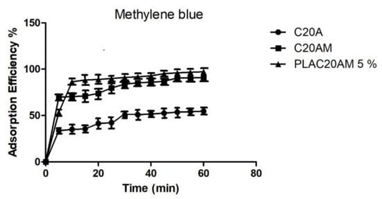 - Li, Y.; Du, Q.; Liu, T.; Peng, X.; Wang, J.; Sun, J.; Wang, Y.; Wu, S.; Wang, Z.; Xia, Y.; et al. Comparative study of methylene blue dye adsorption onto activated carbon, graphene oxide, and carbon nanotubes. Chem. Eng. Res. Des. 2013, 91, 361–368. [Google Scholar] [CrossRef]